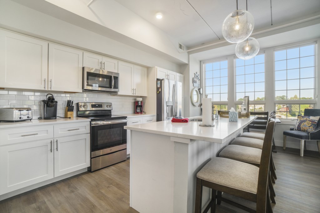 The Edgewater condos provide the comfort, space, and style guests are looking for with elevated features in place as well that help you make even more of your stay. Those who book their accommodations here will enjoy gorgeous downtown views from private balconies that are furnished for added convenience. Condos that can be booked at Edgewater often host everything from wi-fi and cable service to large flat-screen and smart televisions throughout. There are elevators on-site to make for seamless transitions while the inclusion of in-home central air conditioning makes for a comfortable stay no matter when you arrive. Edgewater is designed with ample parking in place with every unit assigned a spot, so guests never have to worry about where to leave their vehicle. There are security doors in place and access codes for added peace of mind at this complex as well.