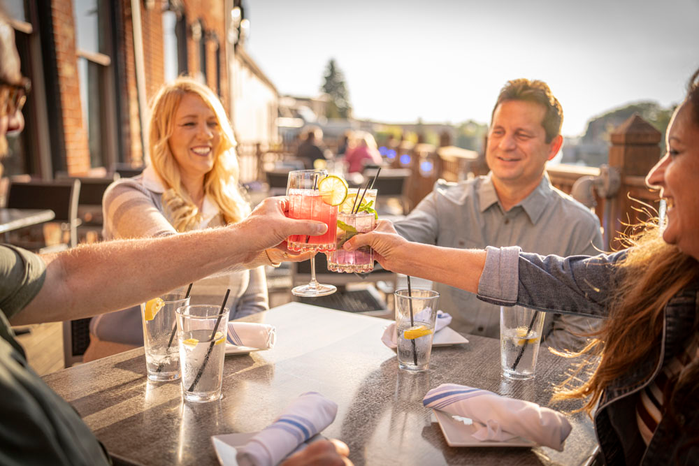Dinner and drinks on the outdoor deck at Bluefish Kitchen and Bar in downtown Manistee, Michigan.